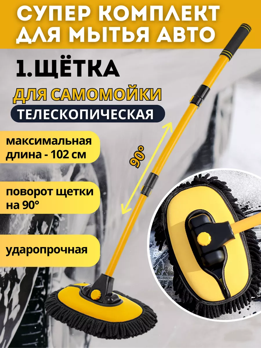 Щетка для мытья машины с телескопической ручкой – отличное решение для быстрого и качественного ухода за автомобилем! Очень прочная конструкция и материал автомобильной щетки для машины Point A-B позволит использовать ее длительное время и экономить ваше время и денежные средства, с легкостью обеспечивая полноценный уход за машиной. Вы легко, быстро и эффективно сможете отмыть любые загрязнения самостоятельно, в том числе на автомойке для авто, а также использовать в качестве профессионального аксессуара – как щетку для детейлинга. Ручка щетки выполнена из алюминия и ударопрочного ABS пластика, изогнута под углом 15 градусов для того, чтобы мойка машины была максимально удобной для вас и позволила добраться до самых труднодоступных мест, не допуская возникновение царапин. Телескопическая ручка выдвигается от 50 до 102 см – вы можете настроить необходимую вам длину и угол наклона и использовать для мытья легковых и грузовых автомобилей. Насадка для швабры из микрофибры отлично вспенивается и впитывает в себя излишки воды, отмывает даже самые сильные загрязнения, не оставляя разводов и неотмытых участков на автомобиле. Щетка для мытья авто применяется для очистки стекол и всего кузова автомобиля, используется в качестве щетки для дисков автомобиля и как полировальная машинка для автомобиля. Универсальное использование щетки автомобильной Point A-B сделает ее незаменимым аксессуаром в наборе для мойки автомобиля! Мыть машину с щеткой для авто может быть приятно и легко! Дополнительно вы можете приобрести сменную насадку для швабры.